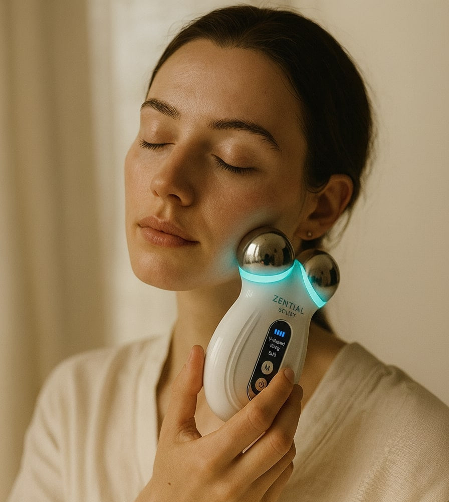 The Sculpt Wand features advanced dual-ball microcurrent technology that delivers gentle electrical impulses to facial muscles. These precise microcurrents work beneath the skin's surface to stimulate muscle contraction and relaxation, essentially giving your facial muscles a targeted workout. This process enhances cellular activity, boosts ATP production (your skin's energy currency), and promotes improved circulation. The dual-ball design ensures optimal current flow between the two contact points, creating a complete circuit that maximizes lifting and toning effects. Combined with the ergonomic V-shaped lifting technique, this technology helps restore facial muscle tone, improve contour definition, and support the skin's natural rejuvenation processes. Unlike topical treatments that only address surface concerns, microcurrent technology works at the muscular level to create visible, lasting improvements in facial firmness and lift.